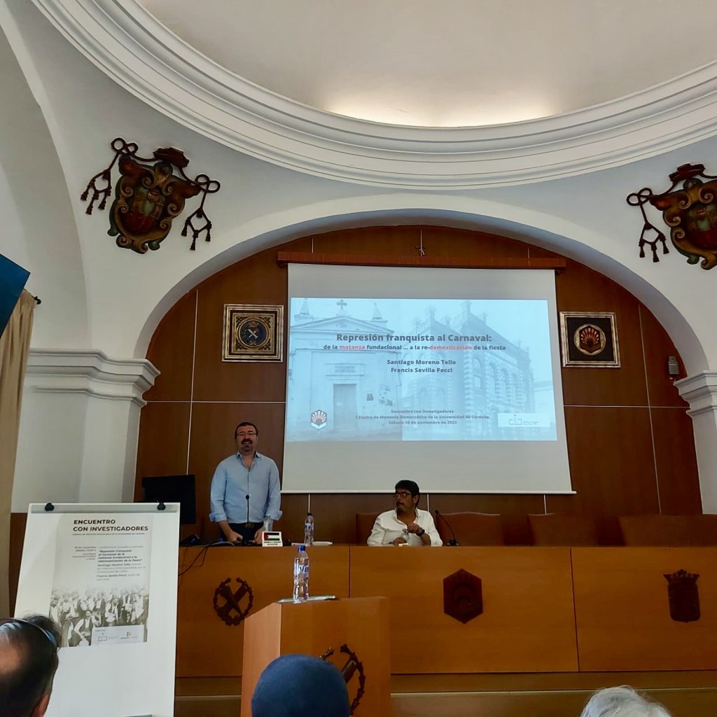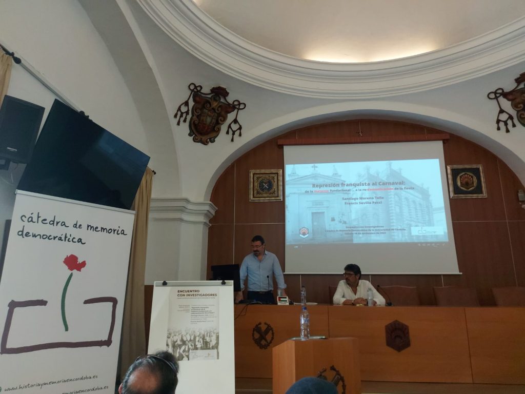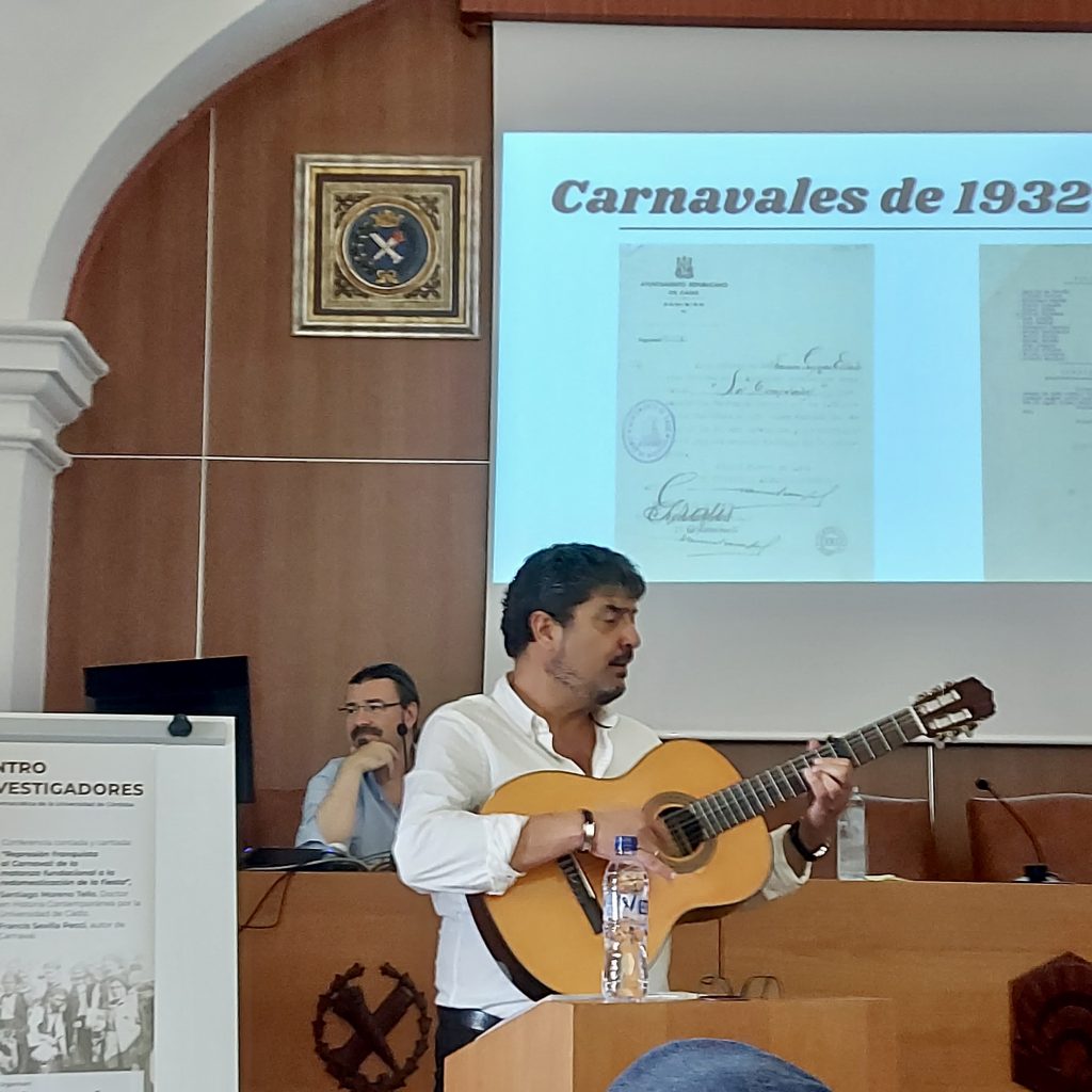 Intervino Santiago Moreno Tello, doctor en Historia Contemporánea por la Universidad de Cádiz con una tesis titulada El carnaval silenciado. Golpe de estado, guerra, dictadura y represión en el febrero gaditano (1936-1945), y Francis Sevilla Pecci, autor de Carnaval. Ambos son organizadores de varias rutas guiadas en las que se mezclan en una simbiosis perfecta la historia y el Carnaval gaditano. Entre ellas podemos destacar “Cádiz y la Guerra Civil”, “Cádiz en la posguerra” y “Cádiz y el Carnaval prohibido”.