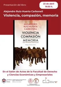 El próximo miércoles 23 de abril a las 19:30 horas, la Facultad de Derecho y Ciencias Económicas y Empresariales de la Universidad de Córdoba acogerá la presentación del libro Violencia, Compasión, Memoria. Una reflexión particular, del abogado y escritor Alejandro Ruiz-Huerta Carbonell. El acto tendrá lugar en el Salón de Actos Historiador Domínguez Ortiz.